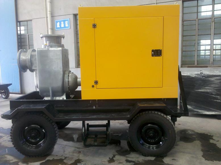 連云港港口采購的揚子江泵業戶外型自吸式柴油水泵機組,配用濰坊華豐品牌柴油機,自吸排污泵1臺、柱銷聯軸器1付、冷卻風扇散熱水箱1套、鋼結構機組公用底座1付(含汽車油箱60L)1套、12v蓄電池100A 2只及聯結導線1套、排氣消聲器1只、二門設計黃色防風雨罩(罩住柴油機)1只,柴油機控制柜:油壓、電壓、水溫、顯示、啟動和停車。 2) 四輪拖車移動型(汽車輪胎)、帶轉向機構和牽引掛條。3) 標準設計為泵組、底座、油箱、控制器、蓄電池組和泵復合一體型設計。柴油機缸數直列: 直列6缸 循環:4沖程 吸氣方式:增壓中冷總排量: 3.3L 缸徑×行程: 105×130(mm) 壓縮比: 17.5:1 額定轉速: 1500rpm 發動機常用功率: 84KW調速系統: 機械調速 啟動馬達: DC24V 交流充電機: AC24V 100%負載燃油消耗量: 19L/h 75%負載燃油消耗量: 16L/h 機油總容量: 18L 冷卻方式: 水循環冷卻 冷卻液總容量(僅發動機): 30.8L 節溫器打開溫度: 82-95℃ 高水溫:104℃ 自吸排污泵流量800m3/h,揚程20m,出口法蘭連接,鑄鐵材質.進出口徑300/250MM.