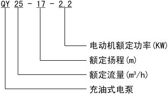 QY型充油式潛水電泵型號意義: