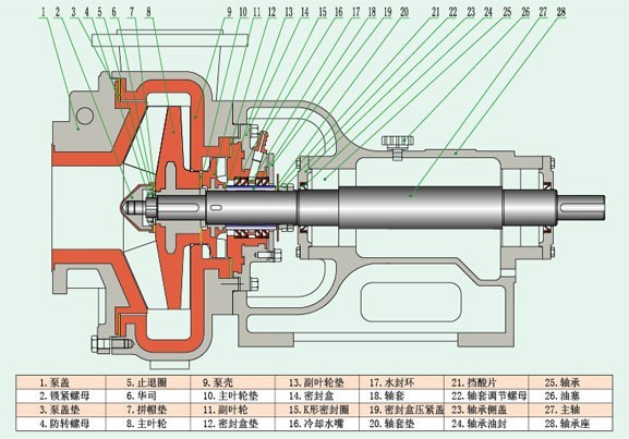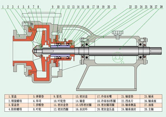 UHB-ZK型料漿泵,脫硫泵,砂漿泵,渣漿泵,壓濾泵密封結構簡圖及泵體結構圖
