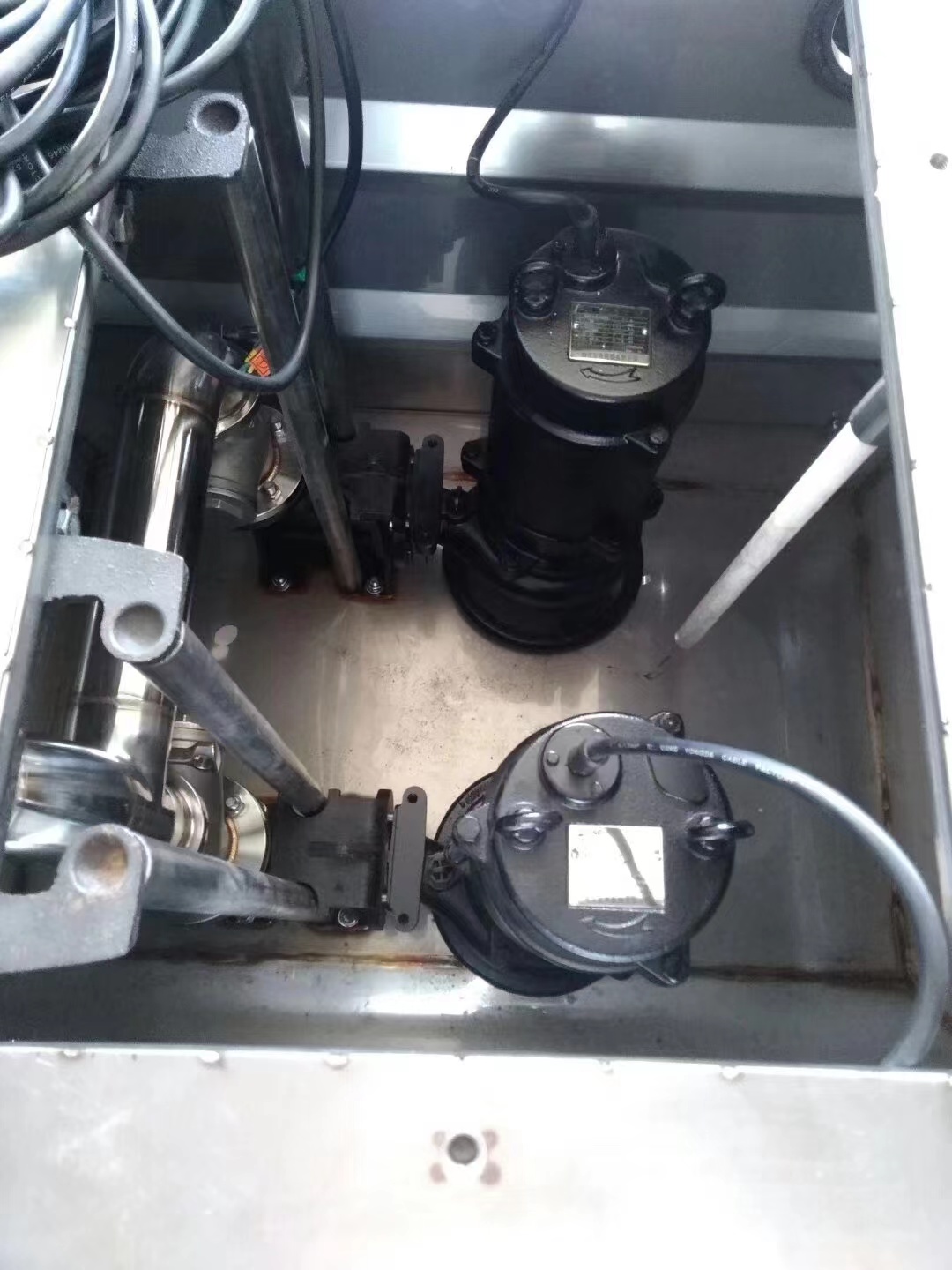 2.當箱內污水達到設定液面后,自動啟動其中一臺污水泵,反沖洗裝置使水箱中污水和污泥一起排至固液分離裝置,將停留在裝置中的固體雜物一起沖入排出管道至污水管網。