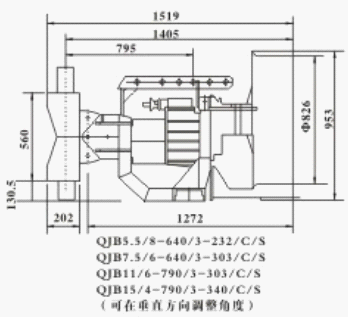2、安裝系統I只適用于池深<4m,機型為QJBO.85/8和QJBl.5/6,且可在水平方向和垂直方向調節角度;當池深>4m時,應選用安裝系統II型。