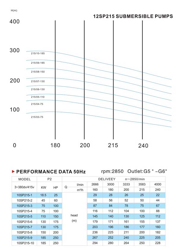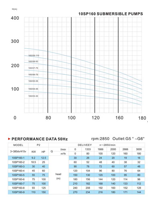 | 6SP30-5 | 7.5 | 5.5 | 13 | 57 | 55 | 52 | 49 | 45 | 42 | 39 | 31 | 22 | 10 | G3" | 100 | |
