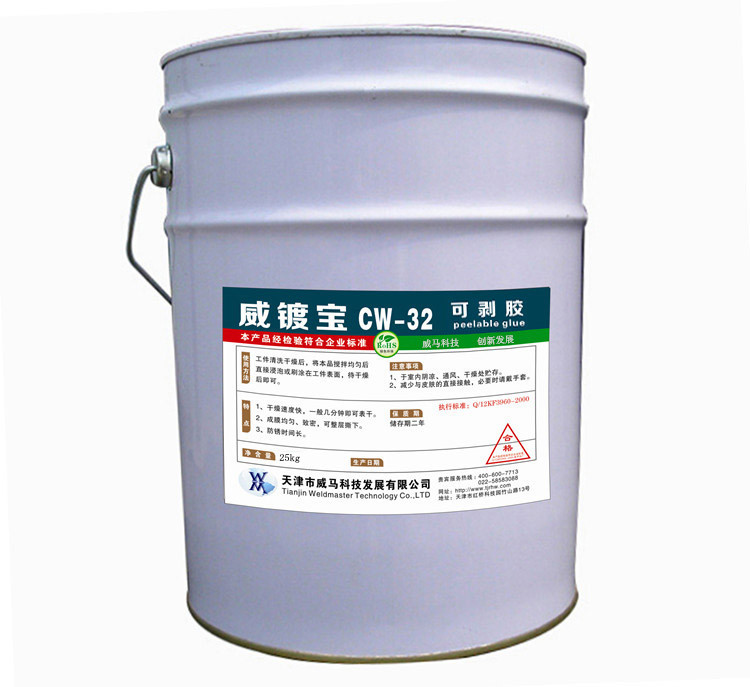 威鍍寶CW-32可剝涂料由高分子材料配制加工而成,它用于各種金屬、玻璃、塑料、陶瓷及各種高分子材料光滑表面的保護,使用方便。如:電鍍和化學鍍行業(yè)用該涂料在金屬工件表面進行部分隔離保護,工件按幾何圖形,需要鍍金屬的部位鍍上金屬,而不需要鍍金屬的部位避免鍍上金屬,避免了電鍍液金屬中貴重金屬的損失和浪費。另外,在化銑加工中,用該涂料進行部分保護,可使你需要的化銑幾何圖形。還有其他金屬材料和非金屬材料光滑表面的保護,如:航空航天有關材料、電器儀表材料,工業(yè)材料和建筑裝飾材料的表面保護,防老化不脆裂、防水、防酸堿腐蝕,使用后-50至80℃該涂料不變質(zhì)損壞,要取掉涂料層時,非常容易。撕掉即可,材料表面不留任何痕跡,光潔如新。